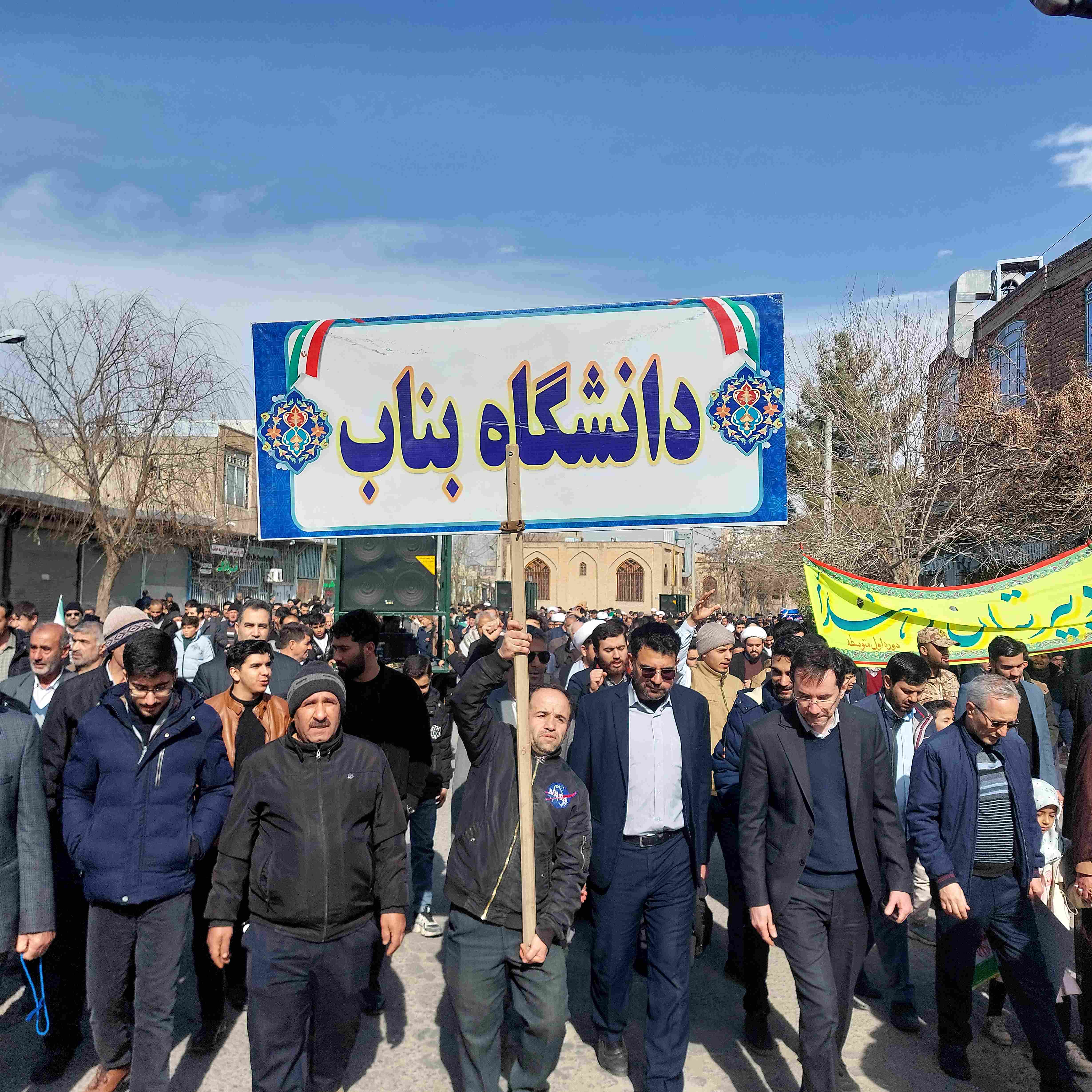 دکتر بهزاد بینش، رئیس دانشگاه بناب، در حاشیه این راهپیمایی ضمن گرامیداشت ایام الله دهه فجر، این حضور را نشانه ای از بصیرت و ولایتمداری جامعه دانشگاهی دانست و اظهار داشت: «حضور آگاهانه و به موقع دانشگاهیان در صحنه های انقلاب، مشت محکمی بر دهان یاوه گویان و مایه یأس و ناامیدی دشمنان این مرز و بوم است.»